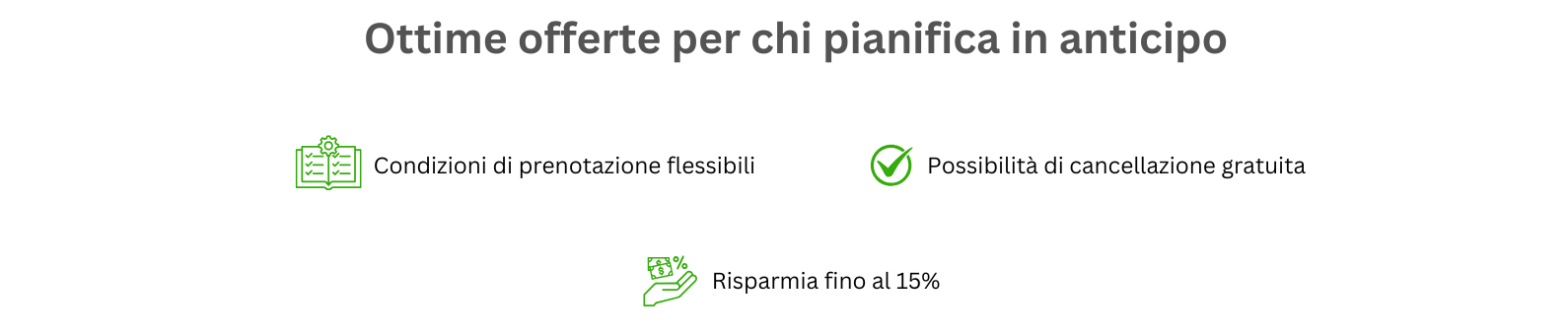 Le nostre offerte speciali "Early booking" e gli sconti fino al -15% comprendono: