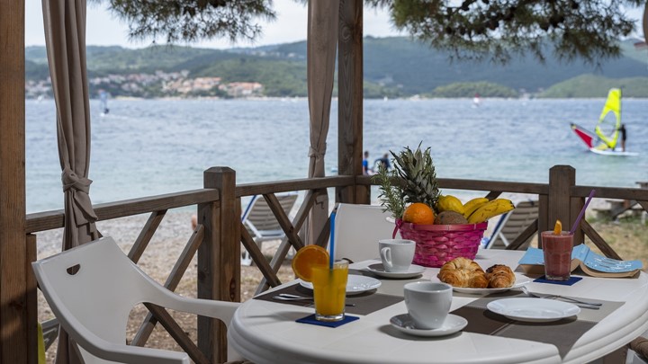 • Klima uređaj • SAT TV • CD /DVD • Ležaljke za sunčanje • Blagovaona sa stolom i 2 stolice • Kauč na razvlačenje s 2 spavaća mjesta • Kuhinjska niša • Plinski štednjak • Mikrovalna pećnica • Hladnjak • Aparat za kavu • Kuhinjski pribor • Staklena tuš kabina • Umivaonik • Wc • Ručnici • 1. spavaća soba s bračnim krevetom • 2. spavaća soba s odvojenim ležajevima • Posteljina
