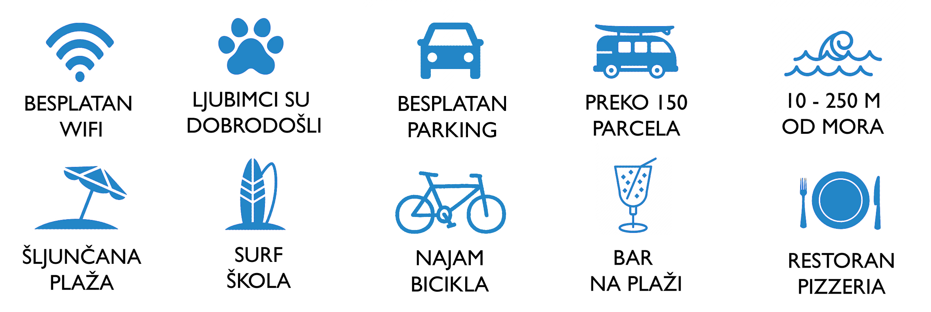 Standard je mobilna kućica koja može smjestiti do pet osoba. Sastoji se od dvije spavaće sobe, dnevnog boravka i jedne kupaonice. Udaljenost od plaže: 100m-200m.