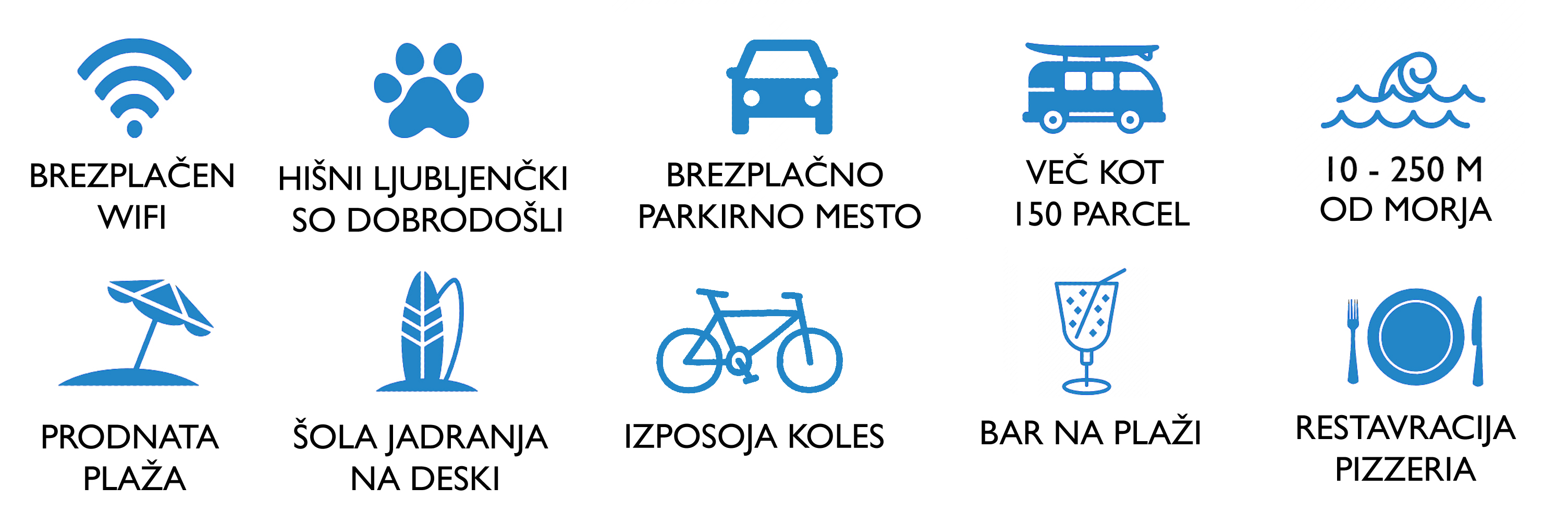 Mobilne hišice v coni Premium se nahajajo v bližini obale (od 30 m do največ 100 m).