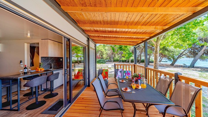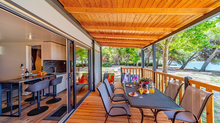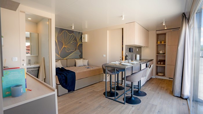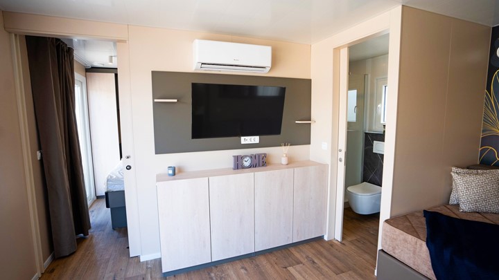 - Gesamtfläche: 40 m² - Abmessungen des Mobilheims: 8,7 x 4,6 m - Anzahl der Betten: 4 + 2 zusätzliche - 2 Schlafzimmer - Küche / Esszimmer - 2 Bäder - Holzterrasse - Parkplatz - Klimatisierung - SAT-TV