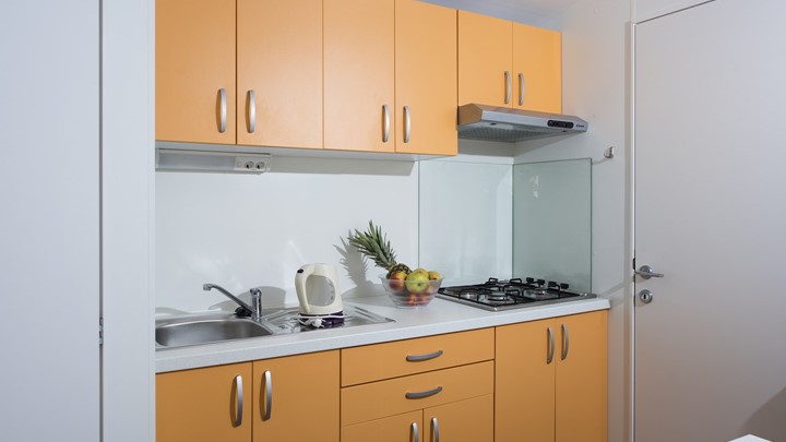 Opremljenost mobilnih hišica: • Klima • SAT TV • Jedilnica z mizo in 2 stoloma • Kavč na izvlačenje z 2 spalnimi mesti • Kuhinjska niša • Plinski štedilnik z napo • Hladilnih • Kuhinjski pribor Kopalnica: • Steklena tuš kabina • Umivalnik • WC • Sušilec za lase • Brisače 2 spalnici • 1. spalnica z zakonsko posteljo • 2. spalnica z ločenimi ležišči • Posteljnina